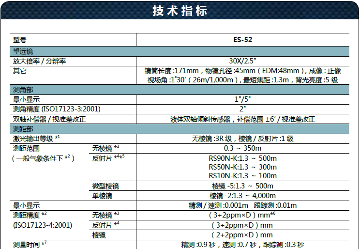 ● ES-52 采用的測(cè)角技術(shù),可以獲得可靠的測(cè)角精度